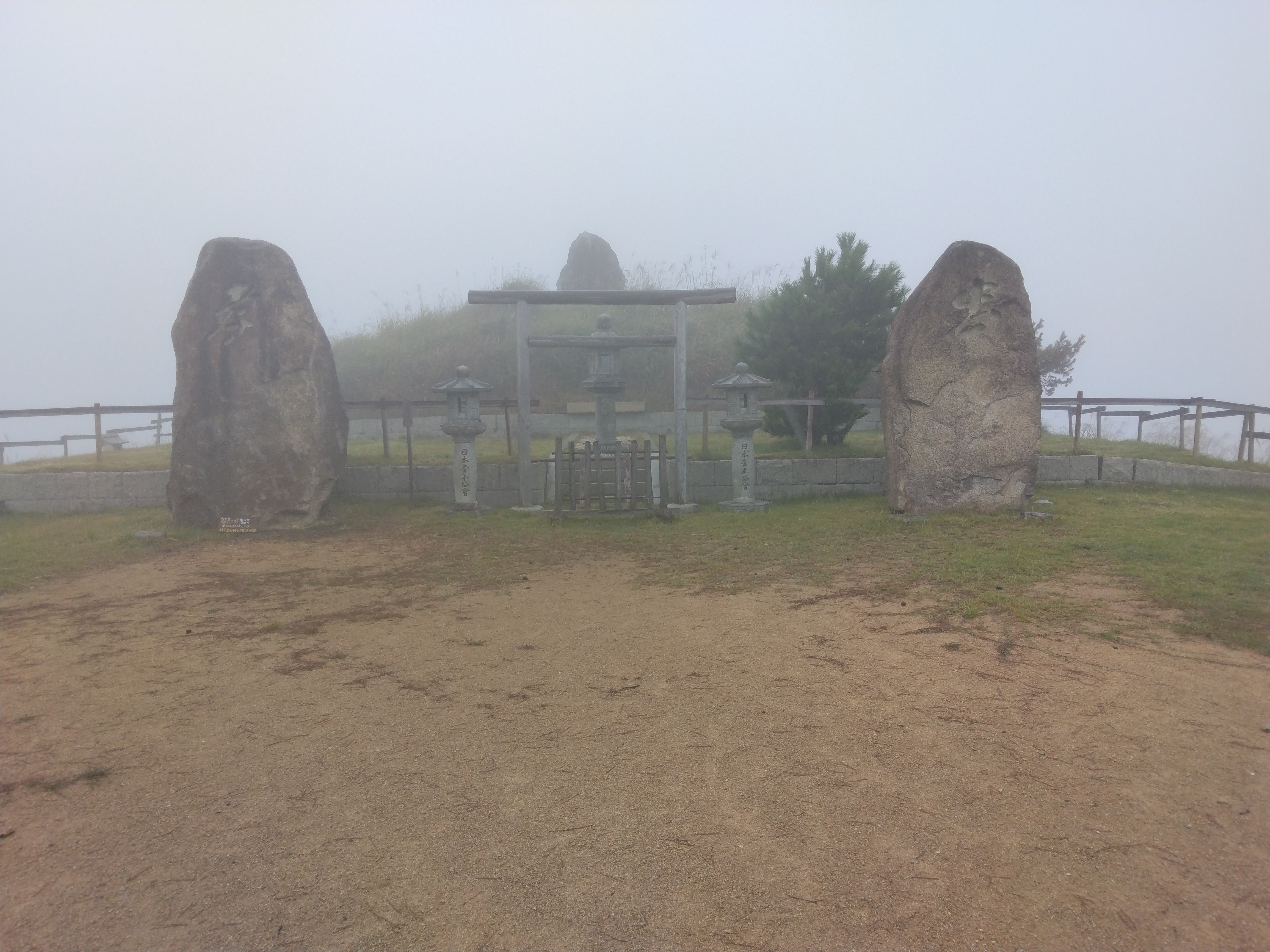 下山は舗装道路から山道に戻るポイントを見過ごし、かなり下ってから左手の尾根に戻る。その後、道が二つに別れていて、登ってきたのは西側であるのを覚えていたが、左の方が幅が広く、いずれ合流するのだろうとそちらに入って行く。しかし、しばらくしても元の道に出そうになく、どんどん離れていくようなので、若干の藪漕ぎをして正しい道に戻る。こんなミスでもYAMAPがあるので、不安がない。あまりの標識の多さに、迷うことがないと思っていたが、肝心の分岐にはなにもなかった。ケルンのある広場に戻ってくると雨も上がり、やや周りが見えるようになった。遠方の山は無理だが、後方の深山を初めて目にすることができた。女房殿との慣れないスマホの電話もなんとか肝心な所で繋がり、心配させずに済んだのはよかった。登山口に下りて、荷物を整理してから温泉に戻る。14:20の日生中央行の送迎バスに乗れるので、それで帰ることにした。自分としては温泉に入り、るり渓のさわりだけでも歩きたいところだったが、女房殿は次のバスまでの2時間を過ごすすべがないので、それに合わせた。結果的には、こちらも早く帰って落ち着いたのがよかった。