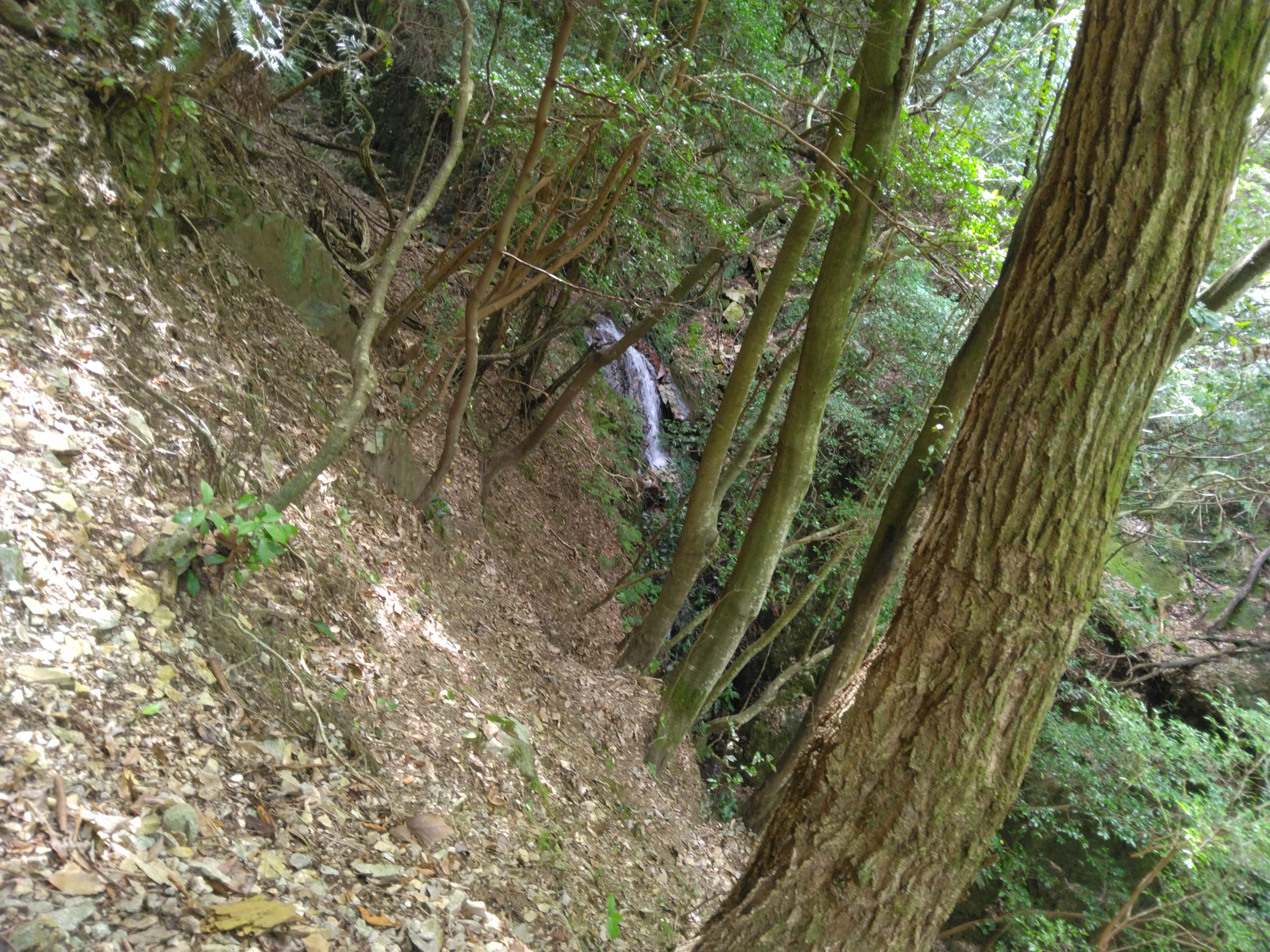 ![]() 高巻き道から滝が見える |