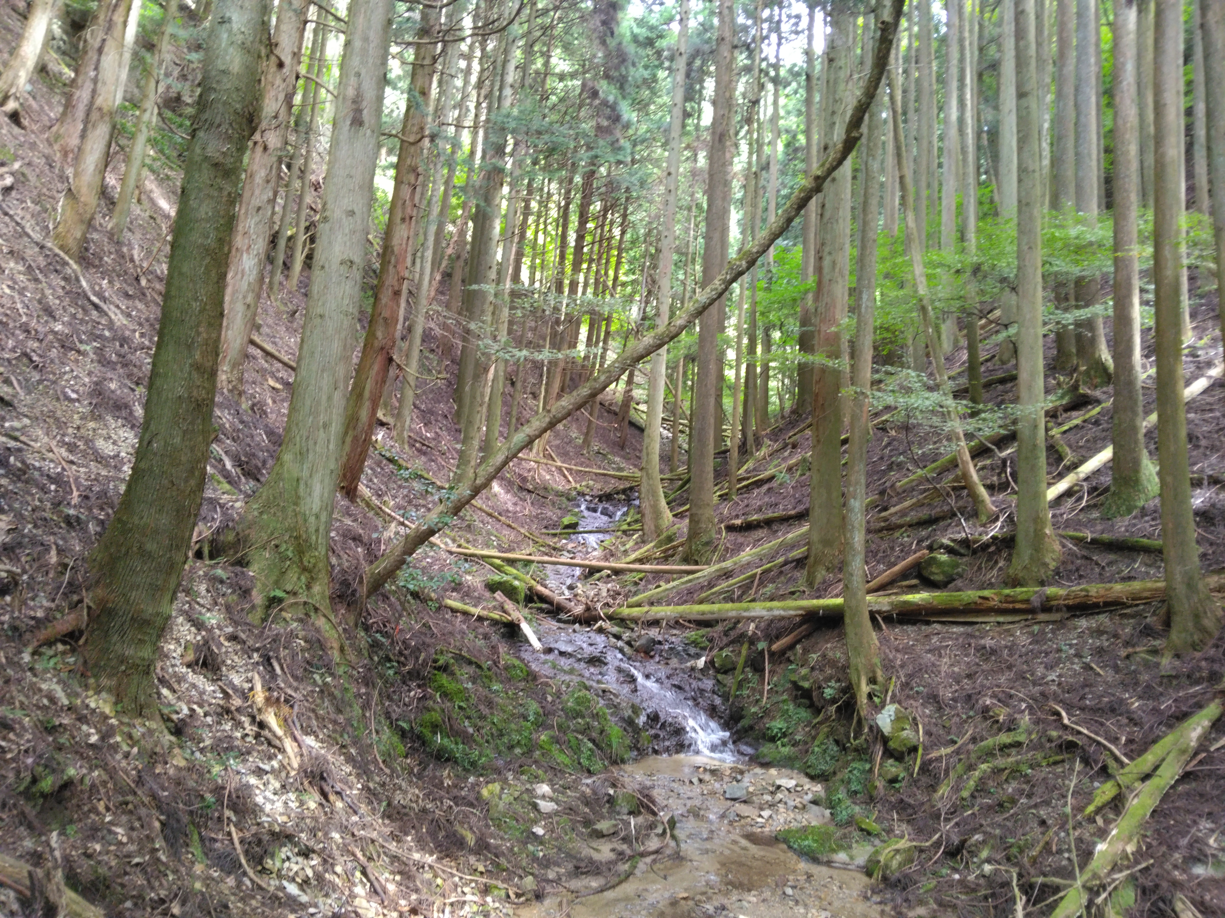 ![]() 杉林の倒木 |